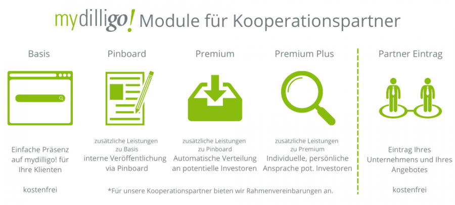 bietet mydilligo! die Möglichkeit eines eigenen Netzwerkzugangs, über den Sie Verkaufs- und Investitionsabsichten für Ihre Klienten auf Wunsch völlig anonymisiert eintragen können.